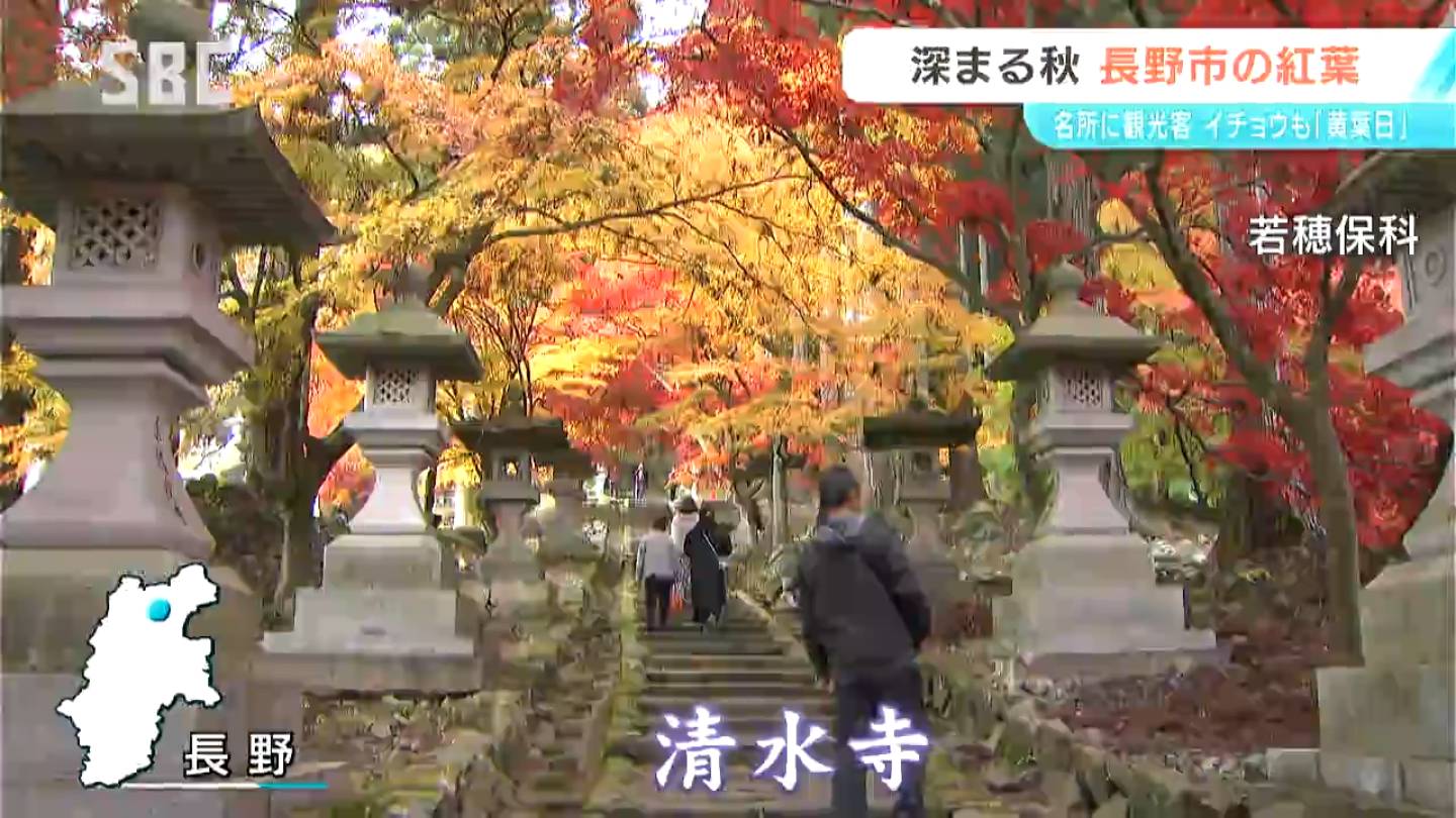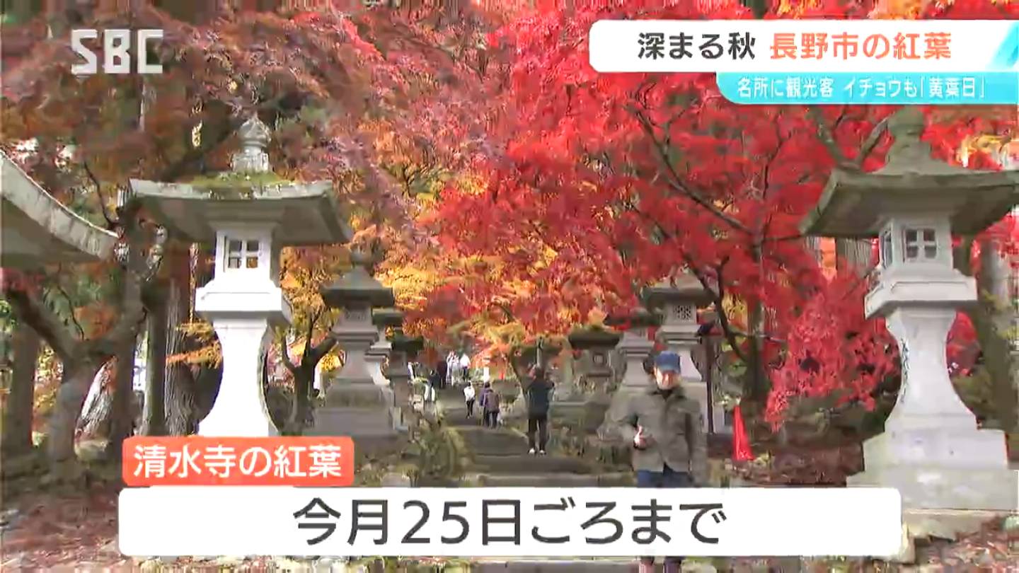 長野市内もモミジやイチョウが鮮やかに色付いています。