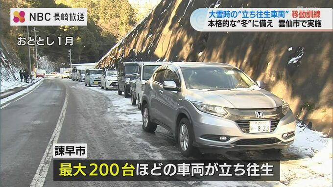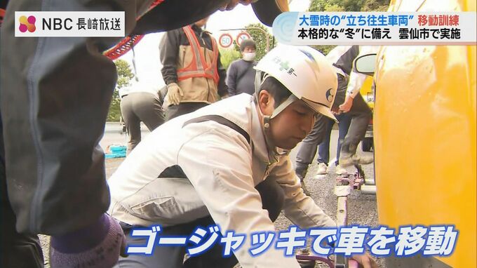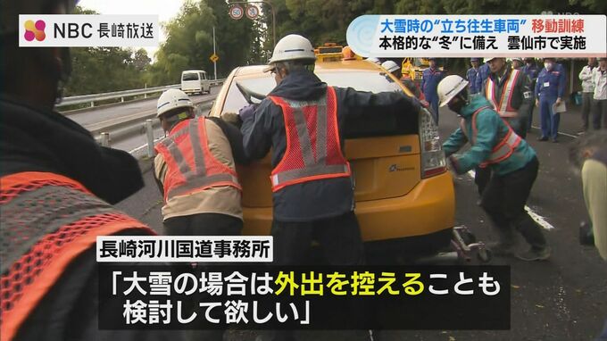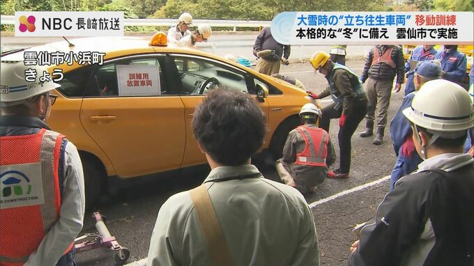 本格的な冬の到来を前に、長崎県雲仙市で大雪により立ち往生した車を移動させる訓練が行われました。