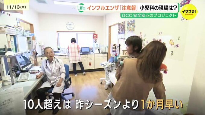 広島市内の先週3日から1週間のインフルエンザの患者数は1医療機関あたり11・23人。今シーズン初めて目安となる10人を超え「注意報レベル」を上回りました。10人を超えたのは、昨シーズンより1か月早くなっています。