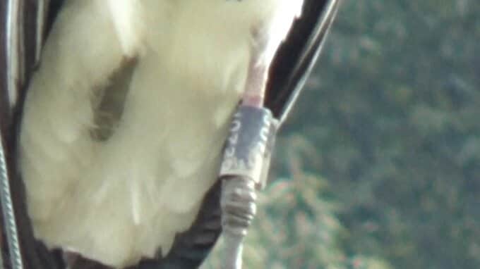 コウノトリは足に個体を識別するための「足環」が取り付けられています。足環に記載されている英数字「JO+3桁の数字」【画像③】のほか足環の色で出生地といった情報が確認できるということです。