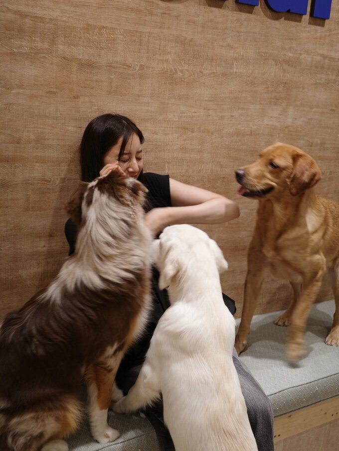 この投稿をみた人たちからは「ほんとに幸せそう!」「大型犬が好きな女性は社交的」「動物好きなんだなって言うのが伝わってきて暖かい気持ちになりました」「ちょっとだけ犬になってみたい」といった反響が寄せられています。