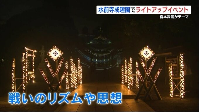 会場のプロジェクションマッピングや竹あかりは、武蔵がまとめた「五輪書」を元に、戦いのリズムや思想が表現されています。
