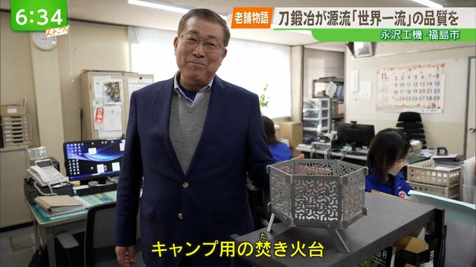 --永澤さん(8代目)「下請け企業だから自社製品を持っていなかった。取引先が不景気になると弊社も不景気になる。それを従業員が心配して、アウトドア好きがいっぱいいて、焚火台を商品にしたらと提案された。それを作る従業員の創意と工夫、今までのような受注ではなく自分達で世の中に売っていくという勉強のために、好きなようにやってみなさいとした。難しいかもしれないけど、一歩踏み出すのが大事だなと思いました。」
