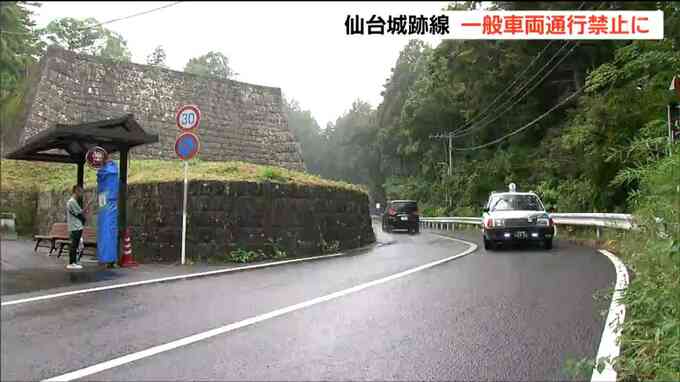 仙台市の市道「仙台城跡(あと)線」について、市は観光客の安全確保や史跡保全のため2030年度をめどに一般車両の通行を禁止する方針を示しました。