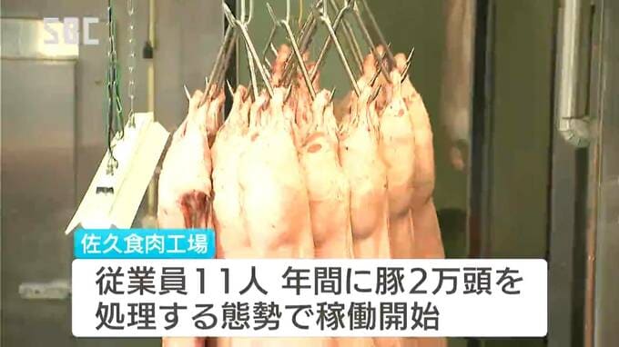 当面は従業員11人で年間にブタ2万頭を処理する態勢で、今後松本の工場の閉鎖時期に合わせ、従業員およそ30人で年間にブタ8万頭・ウシ1800頭を受け入れられるよう拡充していくということです。