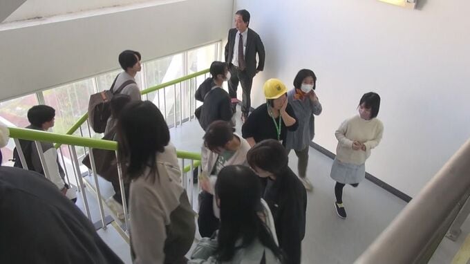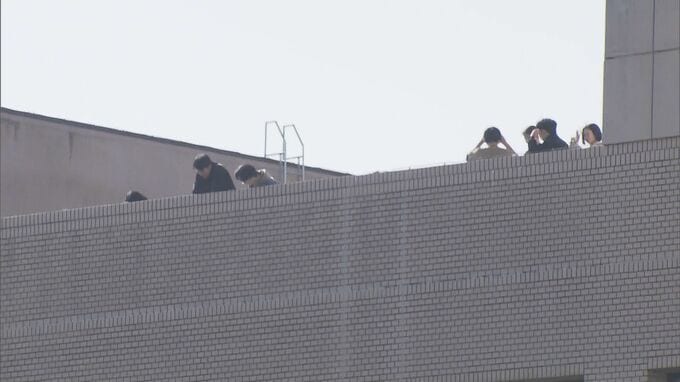 訓練では、津波到達までの1時間で学生や教職員あわせて1万人以上全員が高台などに避難するのは難しいという考えのもと、建物の高層階に避難する「垂直避難」を行いました。