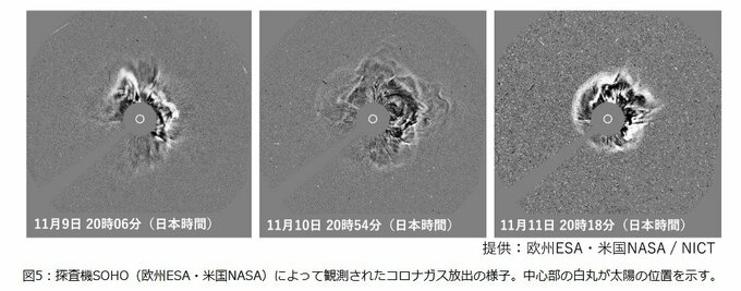 国立科学博物館の解説によると、高温の爆発するガスからは、X線などの電磁波のほかに、電子や陽子(プロトン)などの電気を帯びた素粒子が宇宙空間に大量に飛び出してきます。これらの素粒子やX線が地球に到達すると、デリンジャー現象や磁気嵐などを引き起こし、電波通信の障害やオーロラの活発化につながります。