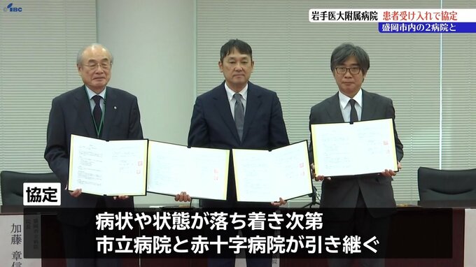 岩手医科大学附属病院は高度な医療の提供や救急体制の確保を図ろうと、盛岡市内の2つの病院と連携する協定を結びました。