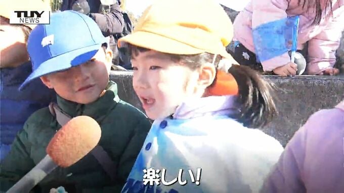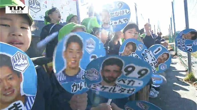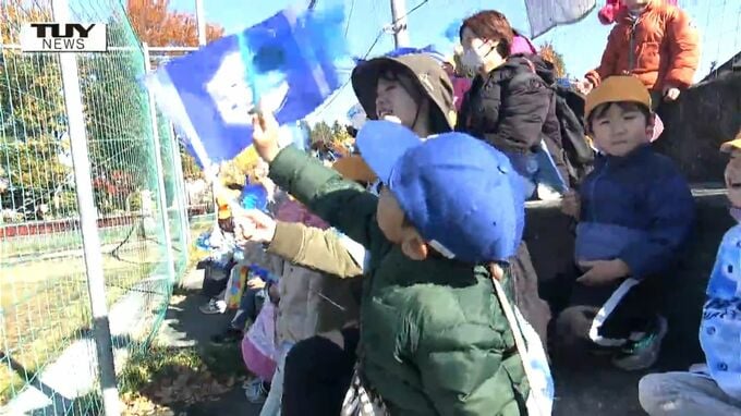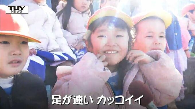 子どもたちはこの日の為に用意した手作りのうちわや色を塗った旗などを使って大きな声で地元のヒーロー達に声援を送ります。