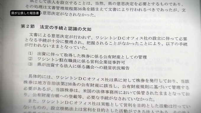 設立時に手続き上の不備があったことなど一連の問題が明らかになり、今年6月に閉鎖された県のワシントン事務所をめぐり、県は14日、問題が発生した要因や背景などをまとめた報告書を公表しました。