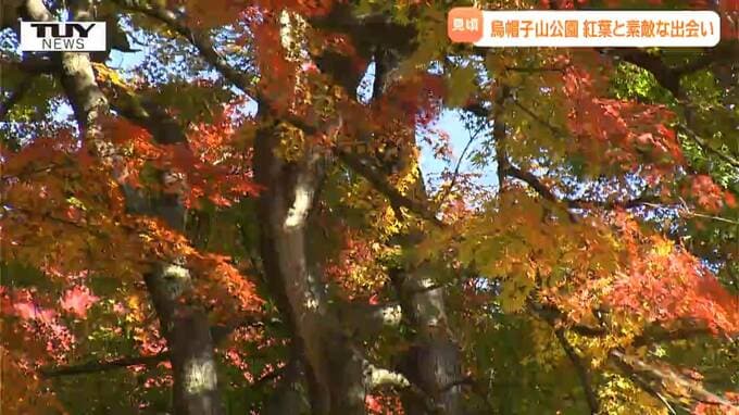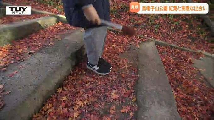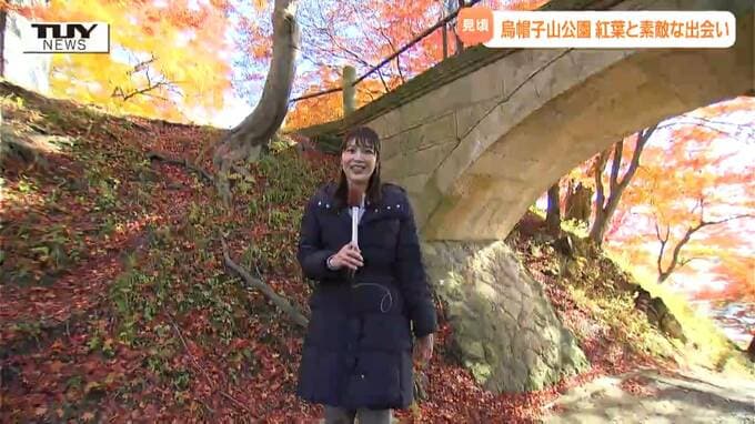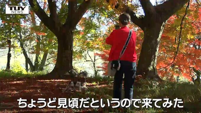 桜の名所としても有名な山形県南陽市の烏帽子山公園で紅葉が見頃を迎えています。素敵な出会いもありました。