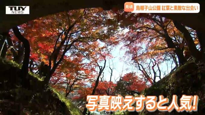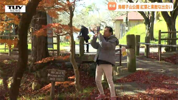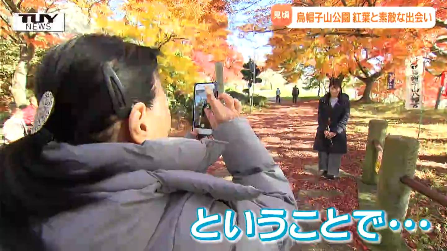 こちらの女性は毎年、烏帽子山公園の紅葉の映え写真を撮りに来ています。