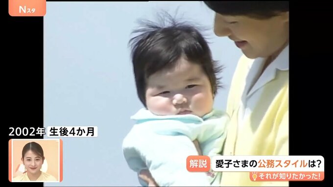 2002年、雅子さまに抱かれて姿を見せられたのが、生後4か月の愛子さまです。多くの人が訪れたため驚かれた様子もありました。