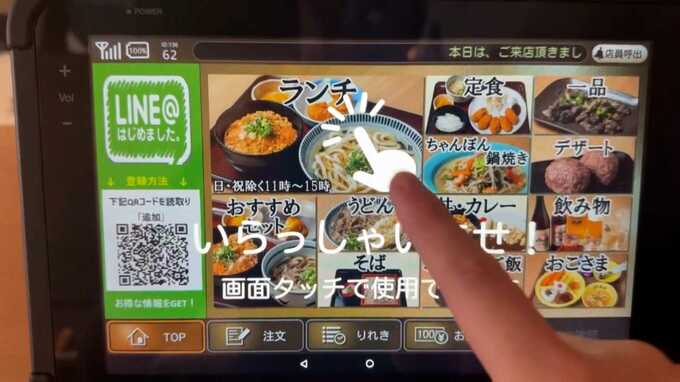 この店では、水のセルフサービスや注文タブレットのデジタル化を進めています。人件費を効率化で吸収しようという工夫です。