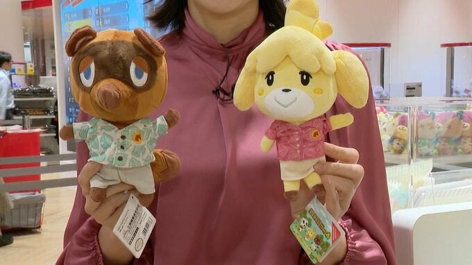 「どうぶつの森のコーナーです。このキャラクターの洋服を購入できます。おそろいで楽しめますよ」