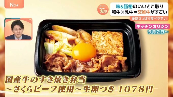 キッチンオリジンでも、11月2日から交雑牛を使ったすき焼き弁当「国産牛のすき焼き弁当~さくらビーフ使用~生卵つき(1078円)」を販売。