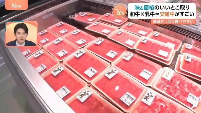 「交雑牛は昨年に対して約120%好調となっています。物価高で和牛より手に取りやすい価格帯ということで、販売が好調だと思います」