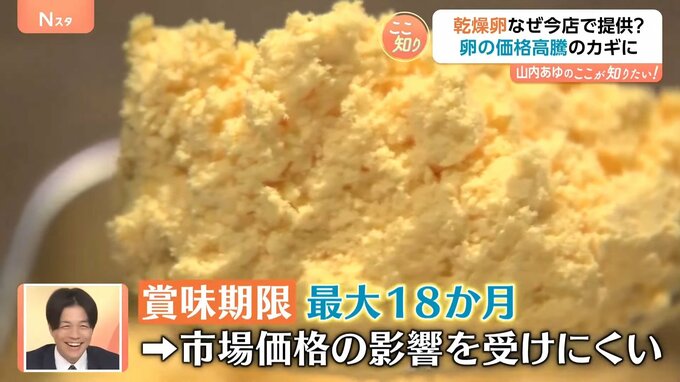 さらに、賞味期限は最大で18か月。生卵よりも市場価格の影響を受けにくいそうです。