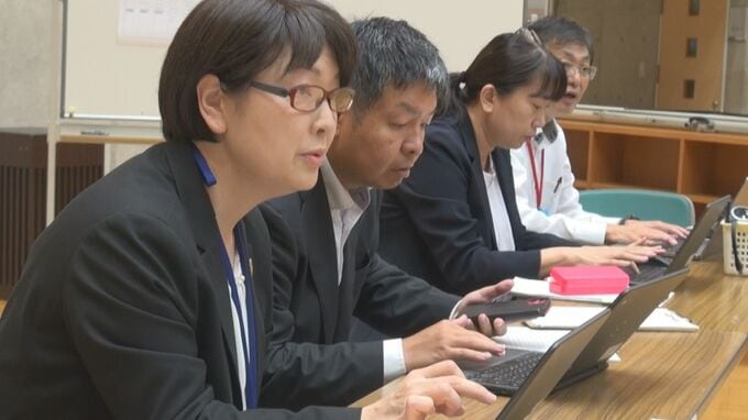 この日の輪島市総合防災訓練に合わせて、初めて行われた「小中学生の一斉安否確認訓練」。門前中学校では校長をはじめ教員らが、生徒から送られてきた情報の集約にあたっていました。