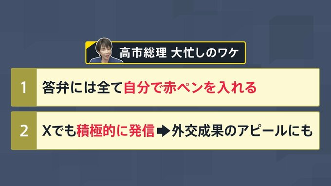 総理になる前から高市総理を担当している記者によれば、総理は「準備を大事にする人。自分で目を通さないと気が済まない性格がこうした働き方につながっている」。