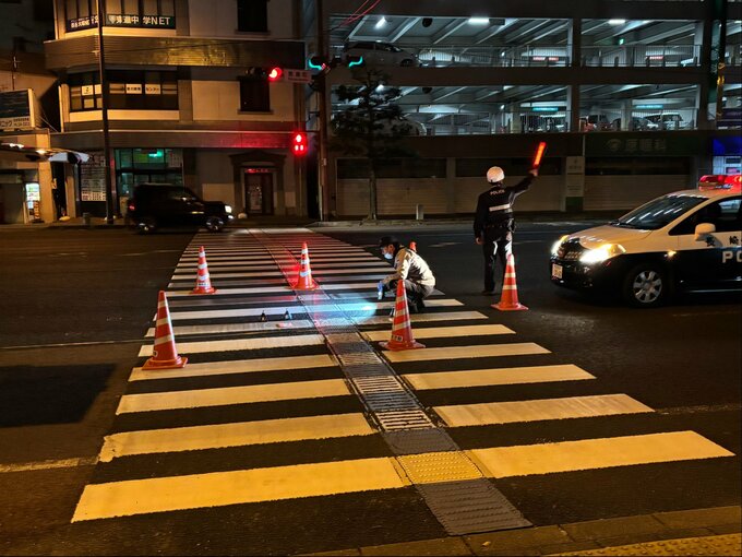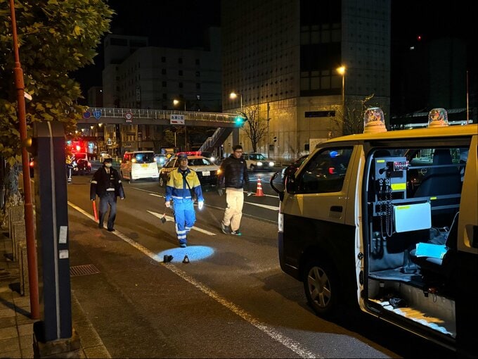 警察と消防によりますと、事故があったのは長崎県佐世保市島瀬町の国道35号で、14日午後11時55分ごろ、市内の男子大学生(22)が運転する軽乗用車が、道路を横断していた市内に住む米軍基地の男性従業員(64)をはねました。