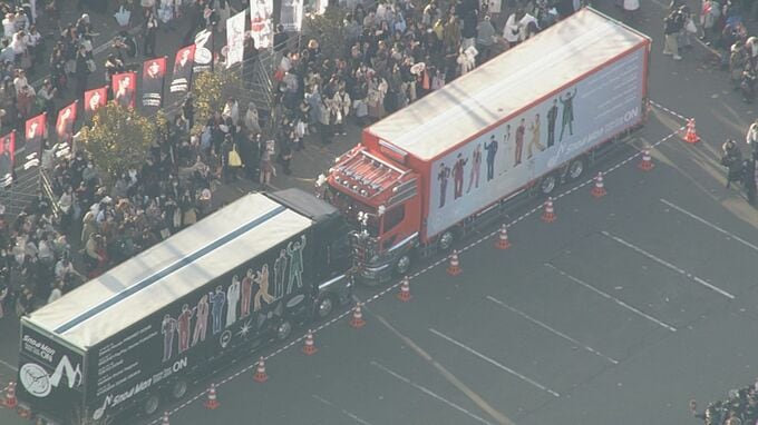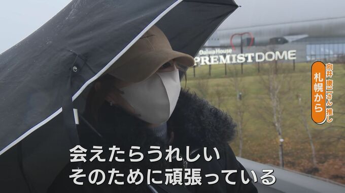 14日午後3時、会場のプレミストドームでは、グッズ販売がスタートしました。気温3℃で冷たい雨が降る状況でも、ファンには全く問題ありません。
