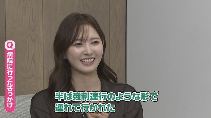 続けて「メンバーだとかスタッフさんが『はるっぴの様子がおかしい』と気づいていて、『早く休ませてください』だとか、スタッフさんが『病院に行ったら』と勧めてくれて、私は絶対行きたくないって思っていたんですけど、半ば強制連行のような形で連れて行かれました」と振り返りました。
