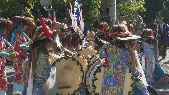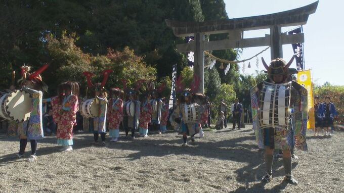 湯前町の神社では秋季例大祭が開かれ、中学生たちが郷土芸能を披露しました。
