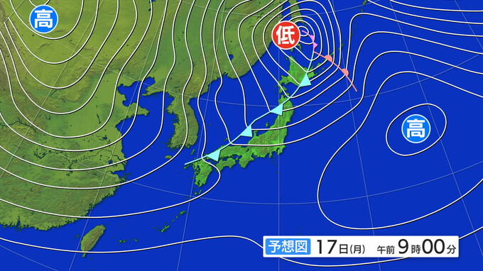 17日(月)は寒冷前線の通過、18日(火)から19日(水)