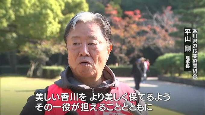 組合ではこれまでに高松市の栗林公園や三豊市の父母ヶ浜など観光客が多く訪れる場所で清掃活動を続けています。