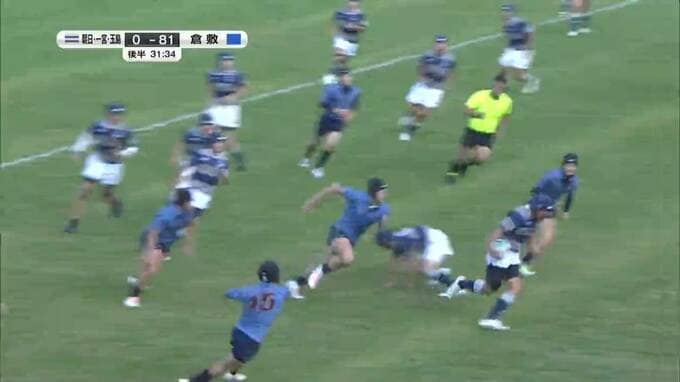 試合は前半3分、倉敷が相手陣営に深く押し込み背番号5の野坂がパワープレイからモールで押し込んでいく押し込んでいくトライ!