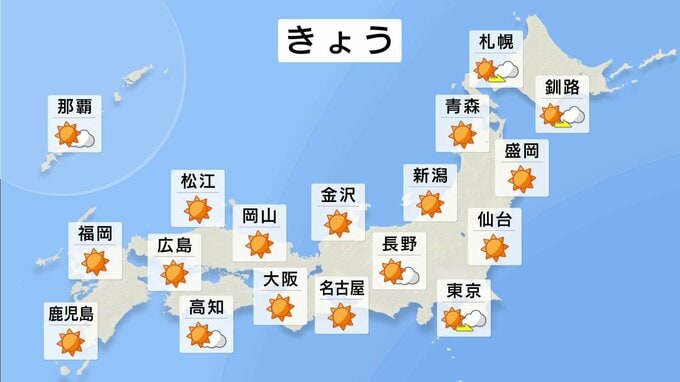 きょうは移動性の高気圧に覆われて、全国的に広く秋晴れとなり、穏やかな1日となるでしょう。空気が乾燥しますので、洗濯物は短い時間でよく乾きそうです。来週は寒くなりますので、冬物の布団も日に当てておくと…