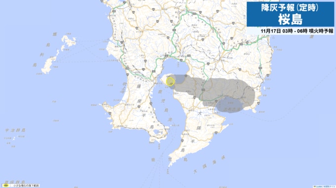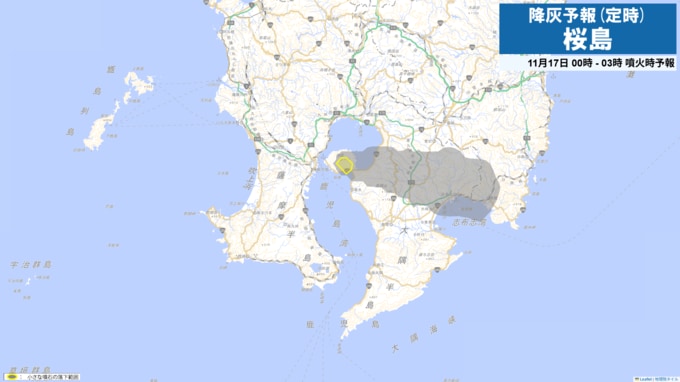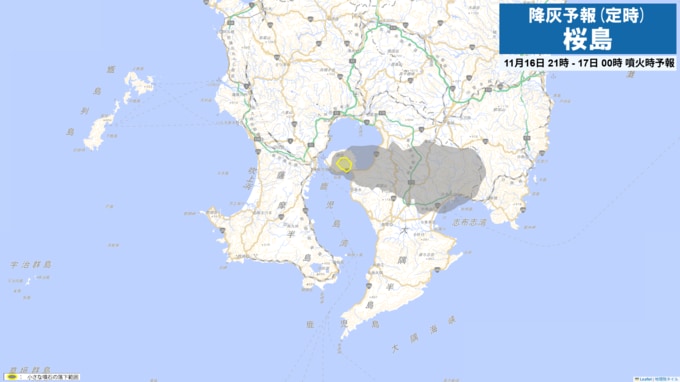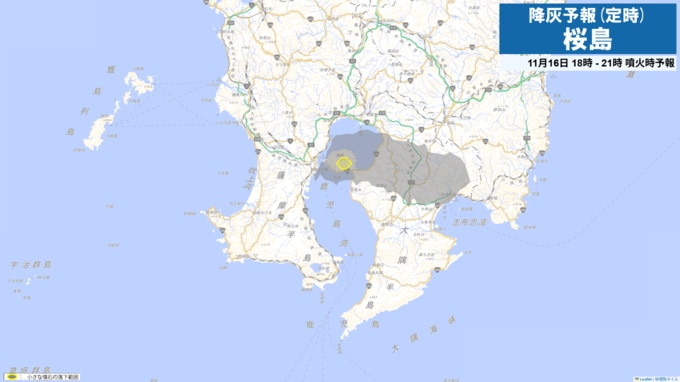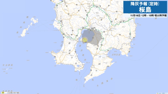 現在、桜島は噴火警戒レベル3(入山規制)です。桜島で噴火が発生した場合には、16日21時から24時までは火口から東方向に降灰が予想されます。