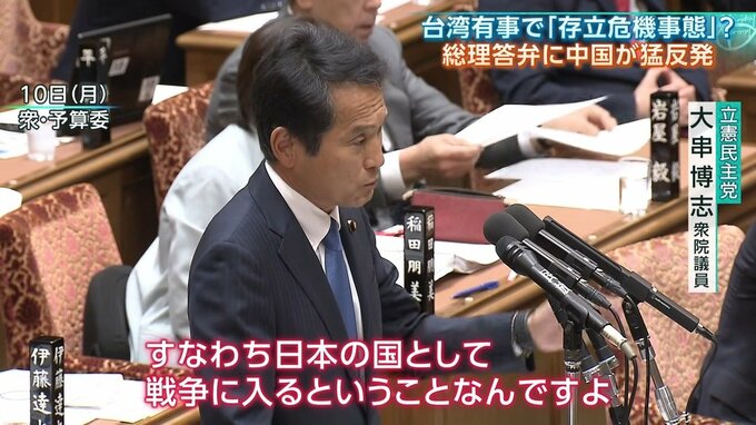 「台湾を完全に中国北京政府の支配下に置くようなことのために、どういう手段を使うか、それがやはり戦艦を使ってですね、そして武力の行使も伴うものであれば、どう考えても存立危機事態になりうるケースであると私は考えます」