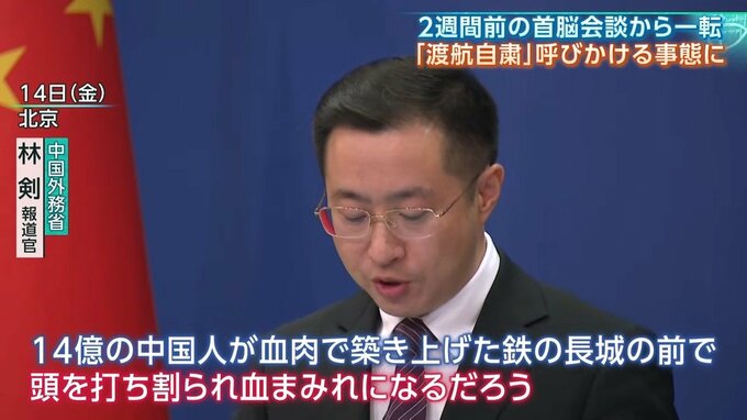 14日(金)には、中国外務省が国⺠に日本への渡航自粛を呼びかける事態となっています。