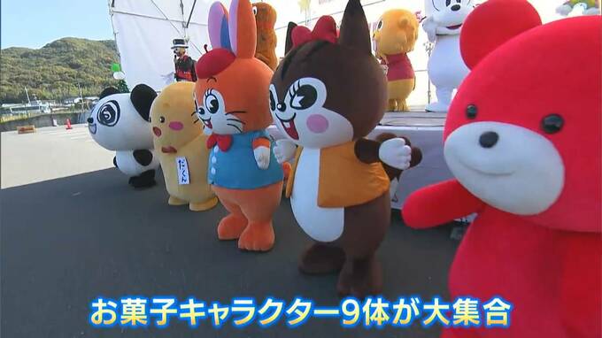 さくさくパンダやチョコボールなど、人気のお菓子キャラクターあわせて9体が登場。全国でも珍しい機会に、子どもたちは大喜びでした。