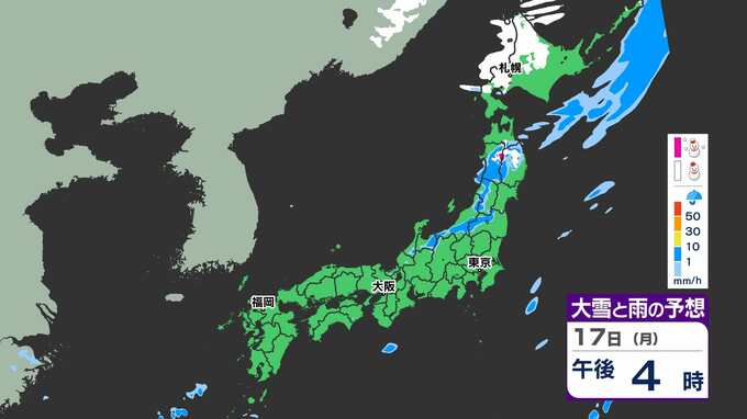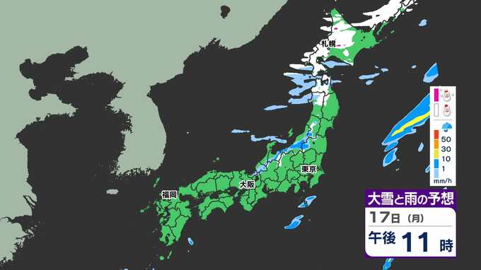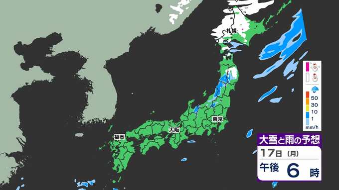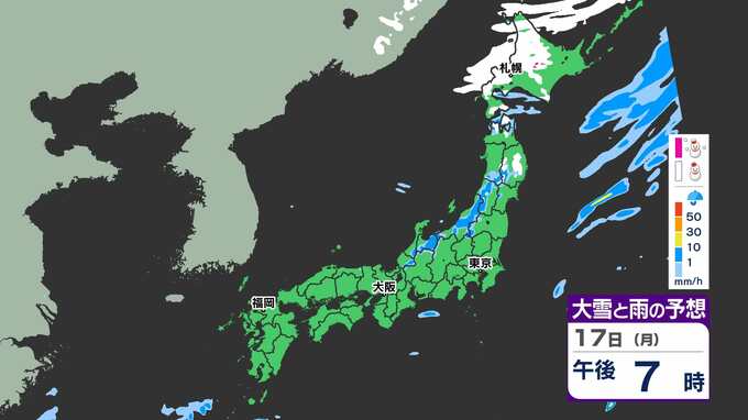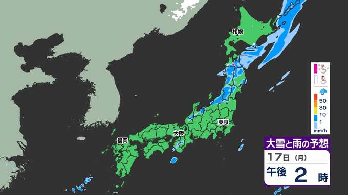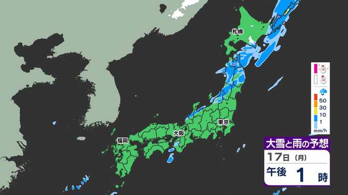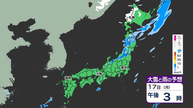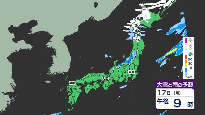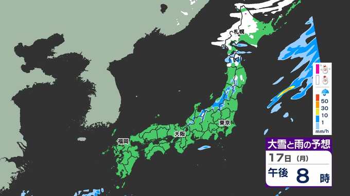【冬の嵐】雪だけでなく「強風」にも注意 山沿いは積雪のおそれ「雪はいつ どこで?」【雪と雨・寒気のシミュレーション17日(月)~19日(水)】次の3連休までの週間予報