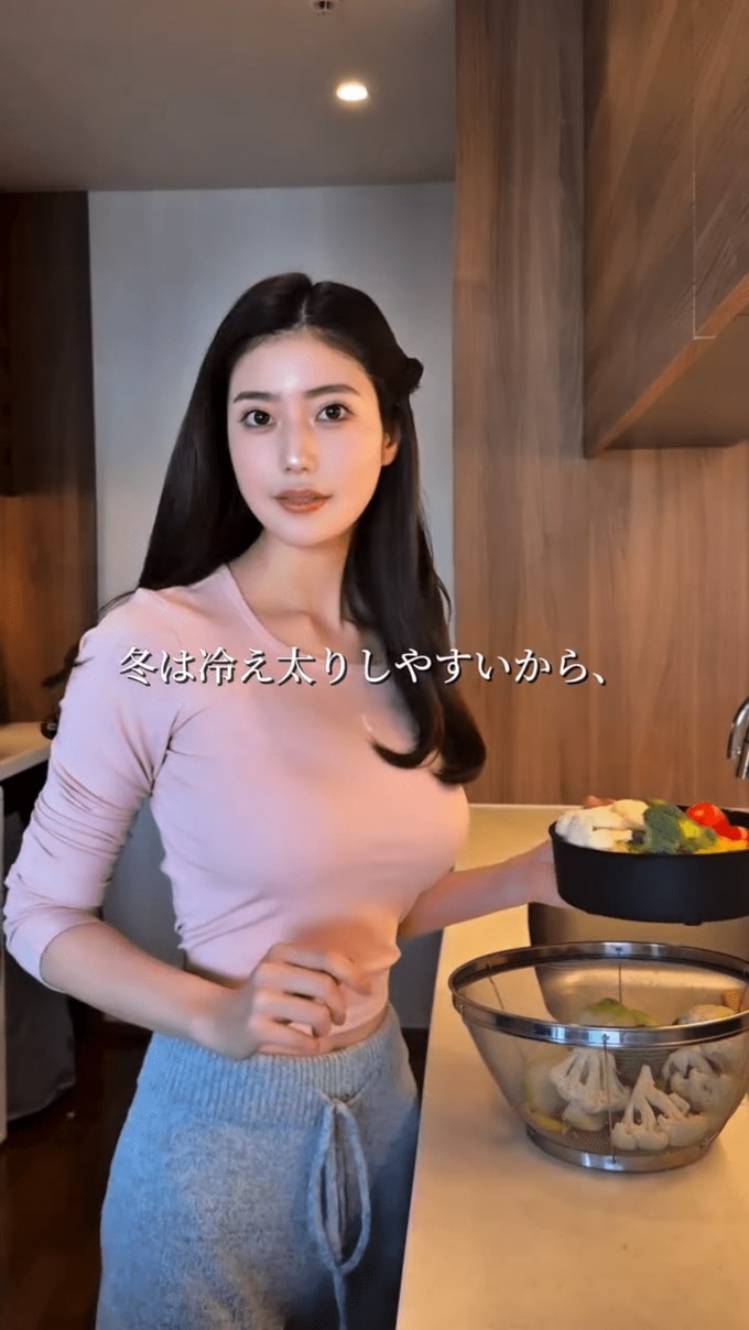 阿部なつきさんは「だから冬は…」「・温サラダ」「・鶏肉でたんぱく質補給(=生命力UP)」「・腸ケア」「この3点が、わたしの体型キープの鍵」と、投稿。