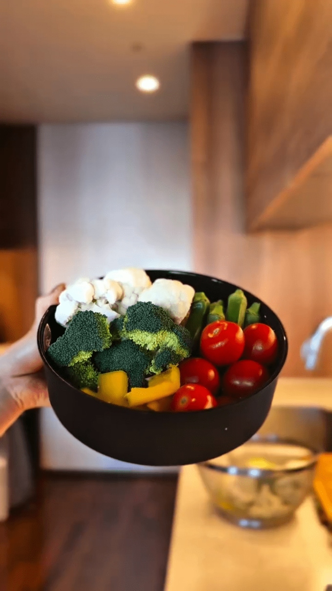 続けて「むしゃむしゃ食べても太らない “温サラダ”レシピ」「オクラ、パプリカ、ブロッコリー、カリフラワー、トマト、チキンで 栄養バランスも満点です」と、説明しました。