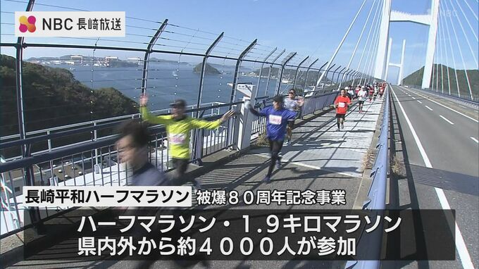 長崎平和ハーフマラソンは被爆80周年の記念事業として開催され、ハーフマラソンと1・9キロマラソンに県内外からおよそ4000人が参加しました。