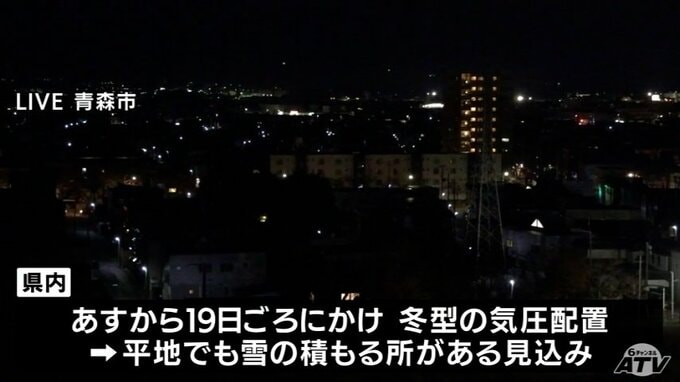 青森県内は17日から冬型の気圧配置となり、夜には平地でも雪の積もる所がある見込みで、交通障害に注意が必要です。県内は17日から19日ごろにかけて冬型の気圧配置となるため、平地でも雪の積もる所がある見込…