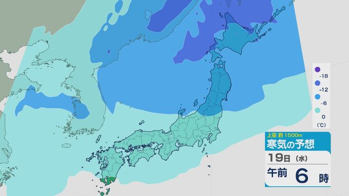 また、上空約1500メートルの寒気ですが、平地で雪が降る目安とされる-6度以下に能登半島が入る予想にもなっています。