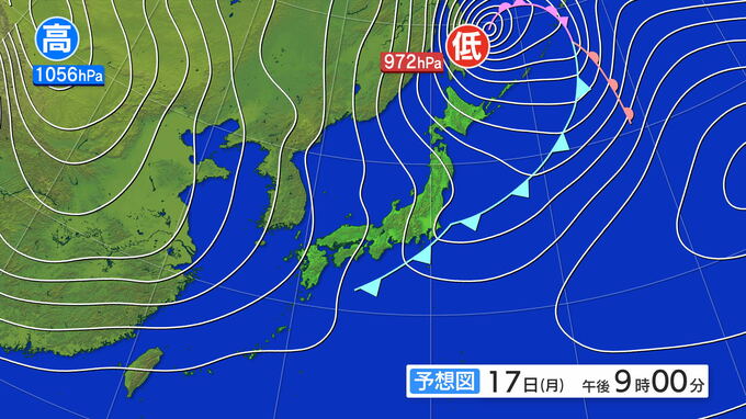 気象庁によりますと、日本海西部にのびた前線が急速に発達しながら、きょう(17日)夜にかけて北~西日本を通過するということです。