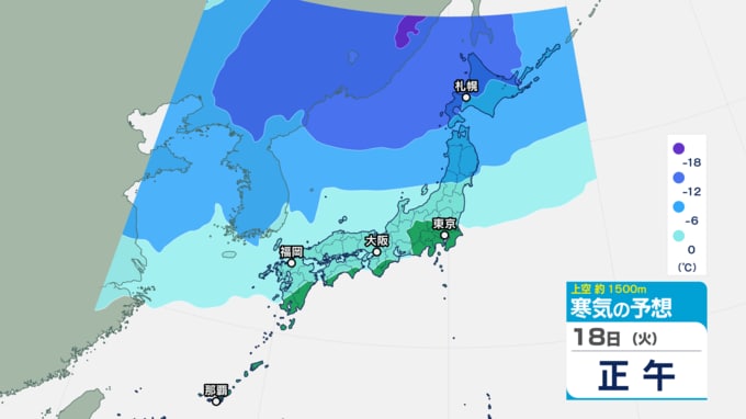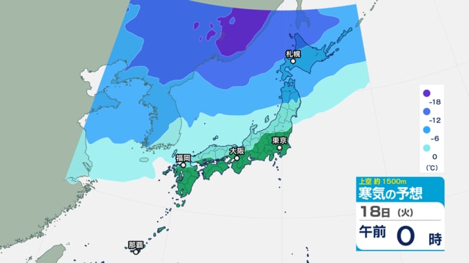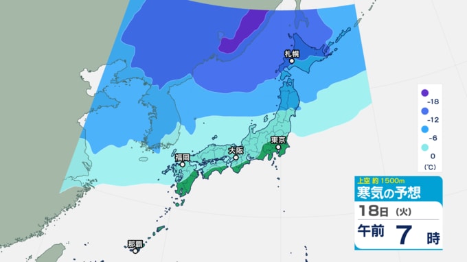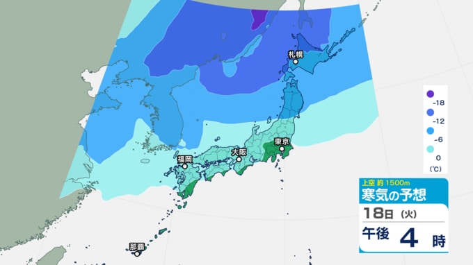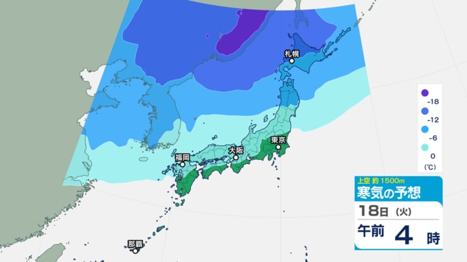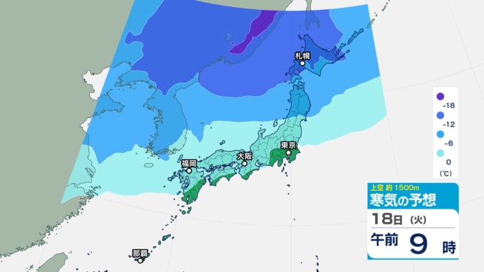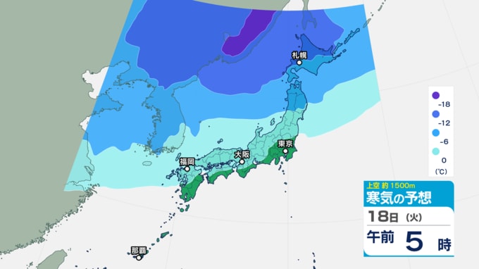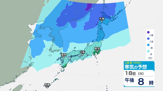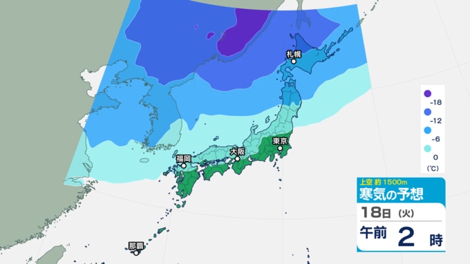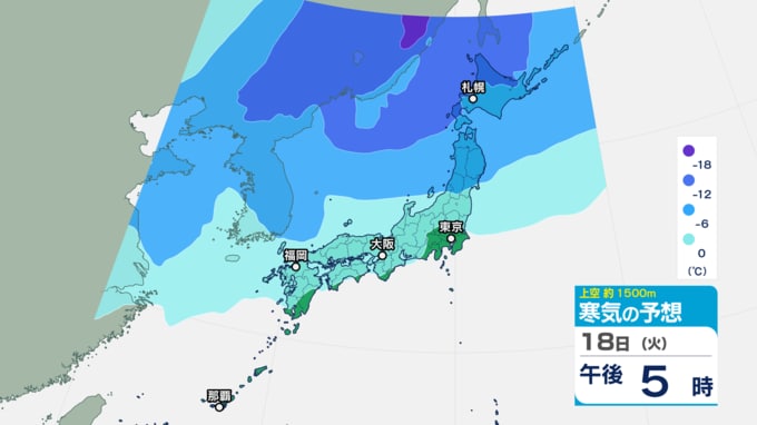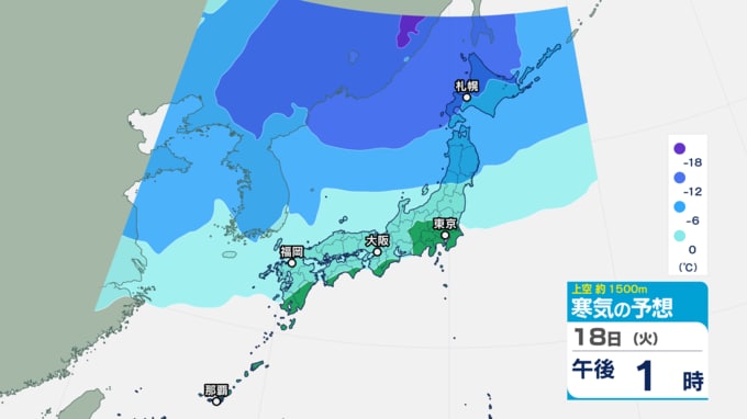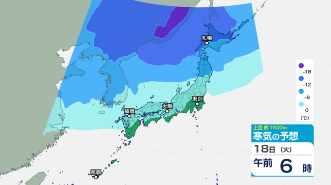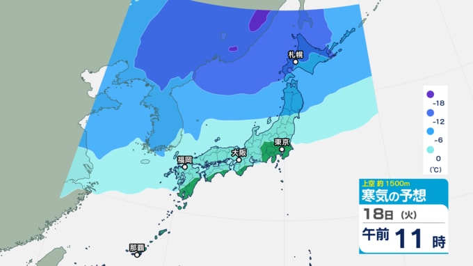 【爆弾低気圧】あす(18日)にかけて冬型の気圧配置に 寒気到来により北日本・東日本の山地を中心に積雪のおそれ 寒気&雨雪&全国各地の天気シミュレーション【気象庁 17日発表】 RSK山陽放送 2025年11月17日(月) 12:34 国内 18日(火)1時間ごとの「寒気シミュレーション」