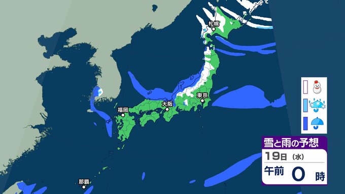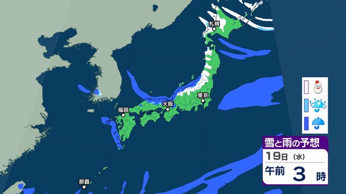 【爆弾低気圧】あす(18日)にかけて冬型の気圧配置に 寒気到来により北日本・東日本の山地を中心に積雪のおそれ 寒気&雨雪&全国各地の天気シミュレーション【気象庁 17日発表】 RSK山陽放送 2025年11月17日(月) 12:34 国内 19日(水)3時間ごとの「雨雪シミュレーション」