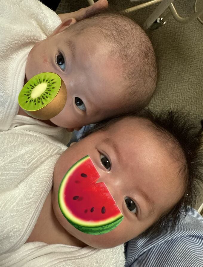 双子の育児に関しては「髪ふさふさが兄、薄いのが弟」と紹介。ミルクと母乳の与え方について「双子ぶん母乳おいつかないのでミルク基本、プラスとれたぶん搾乳、さらにたまに母乳吸ってもらう」と具体的な方法を共有しています。