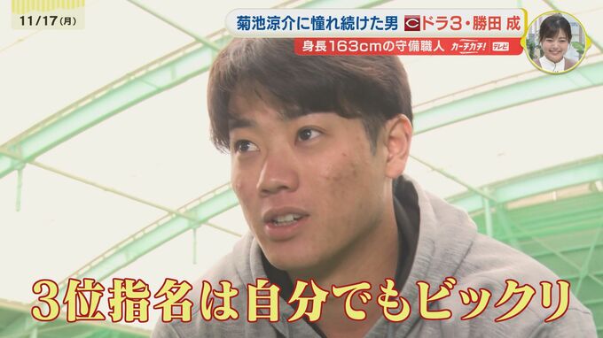 高い守備力を武器にカープからドラフト3位で指名された近畿大学の勝田成。