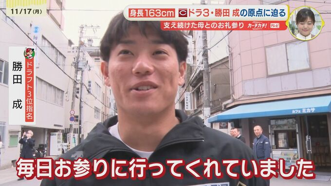 小学校から大学まで地元・大阪で野球を続け、プロ入りの夢を叶えた勝田選手。