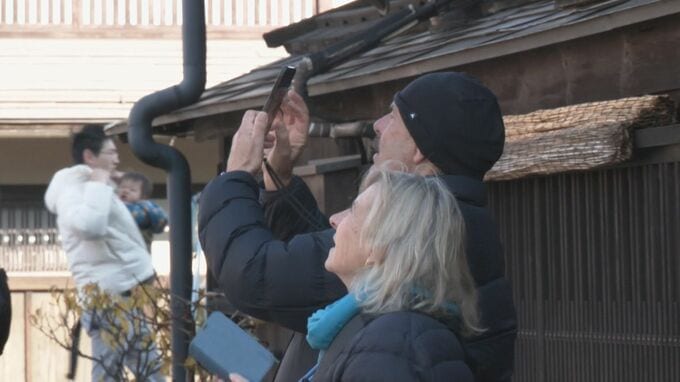 飛騨高山の雪吊り作業は、冬の風物詩として古くから親しまれていて、観光客らは珍しい作業の様子を写真に収めていました。雪吊り作業は高山陣屋前広場など市内29か所、あわせて54本の松で1週間ほどかけて順次行われます。