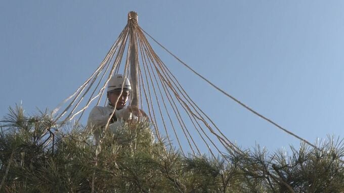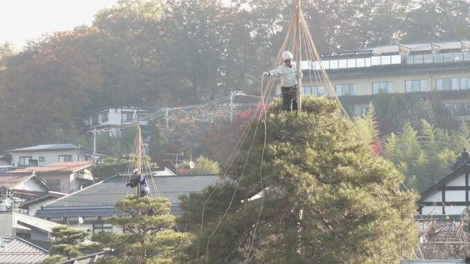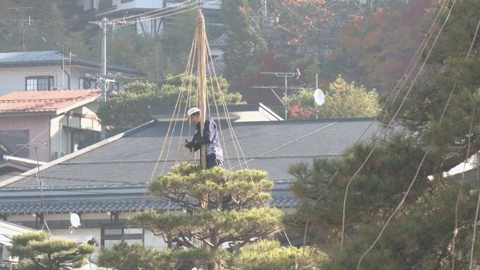 あす初雪の可能性も… 冬の風物詩「雪吊り」作業始まる 雪の重みで松の枝折れるのを防ぐため縄で固定 岐阜・高山市